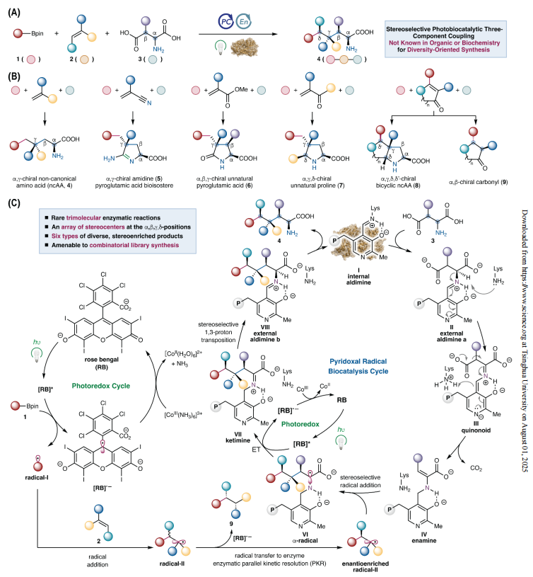 [1]Zhang, Chen, Zhou, Jun, Xie, Pei-Pei, et al. Diversity-oriented photobiocatalytic synthesis via stereoselective three-component radical coupling. Science 2025, eadx2935.