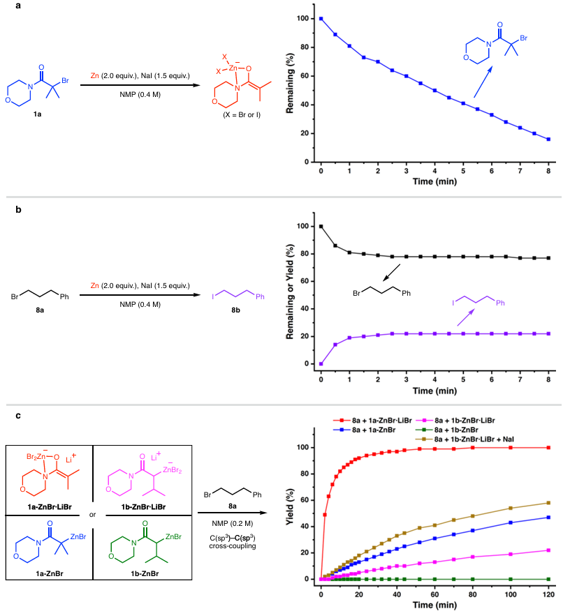 Through cross-experimentation and real-time monitoring, the authors confirmed that zinc preferentially inserts into the C–Br bond of activated α-bromo carbonyl compounds to generate Reformatsky reagents. These reagents were identified as the genuine nucleophilic active species, rather than alkylzinc reagents derived from unactivated alkyl halides.