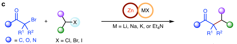 Reformatsky reagents (generated from α-halo carbonyl compounds and zinc) have traditionally been primarily employed in reactions with activated electrophiles such as aldehydes, ketones, acyl chlorides, etc. (Figure 1a). These reagents are known for their lower reactivity compared to organolithium or Grignard reagents. Due to their limited nucleophilicity, they generally cannot undergo direct nucleophilic substitution (SN₂) with unactivated alkyl halides (e.g., ethyl bromide) and typically require reliance on transition metal catalysis (e.g., Ni, Fe, Co, etc.) (Figure 1b).