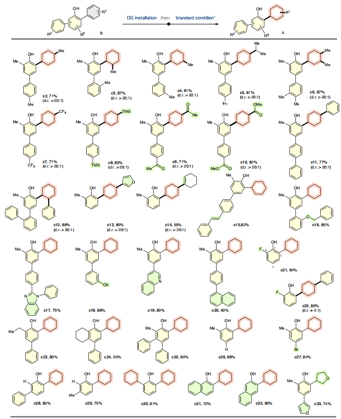 Figure 3. Scope of the phenol substrates for the directed site-selective saturation.[from Nature Catalysis]