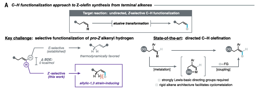 Fig. 1A C–H Functionalization approach to Z- olefin synthesis from terminal alkenes.