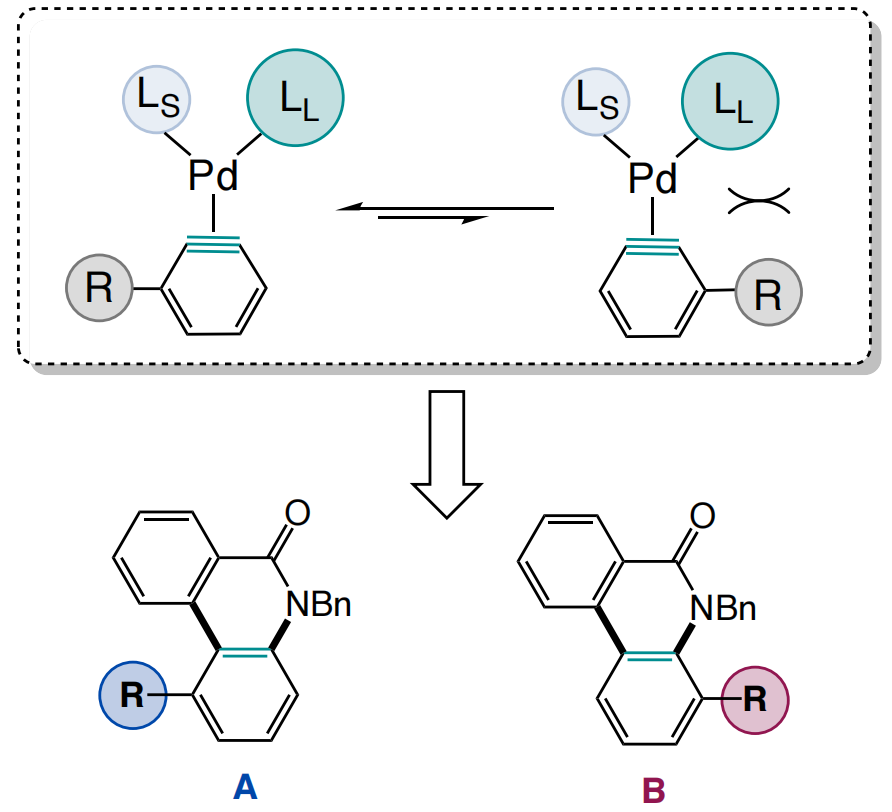 Abstract: The highly reactive nature of arynes has been leveraged to make many value-added species. Despite this success, synthetic applications of aryne methodology remain limited by regioselectivity challenges. Additionally, regioselectivity issues can be especially prohibitive in metal-mediated aryne reactions as now additional interactions of the metals, ligands, and substrates contribute to regioinduction. Investigating regioselectivity of metal-bound arynes is crucial to expanding aryne methodology as some transformations can only occur through metal-mediated processes. To induce regioselectivity in metal-catalyzed aryne reactions, we postulated that ligands could be used to control the binding and subsequent functionalization of the aryne. To test this hypothesis, we used a palladium-catalyzed aryne annulation originally developed by Larock and coworkers as a model reaction. We found we can induce regioselectivity by using an unsymmetric (C1) monodentate ligand environment. Bulky monodentate phosphine ligands such as tri-tert-butylphosphine (PtBu3) gave the best combination of regioselectivity and yield. This system was compared to a symmetric (C2) ligand system that Larock and coworkers found optimal. Through these studies we provided the first evidence that ligands can be used to intentionally induce regioselectivity within aryne reactions. To further explore the origins of regioselectivity, we explored the molecular parameters responsible for regioselectivity via linear free energy relationships (LFER) and multivariate linear regression. To study how steric encumbrance influences regioselectivity, we performed Charton analysis on the aryne substituent and the ligand. These results showed that the ligand can amplify steric effects of the aryne substituent to increase regioselectivity. To study electronic effects, Hammett parameters of the aryne substituent were investigated and from these studies it was found that inductive effects influence regioselectivity. Having decoded the contribution of steric and electronic effects on regioselectivity independently, we next sought to create a more comprehensive regioselectivity model via multivariate linear regression. This model shows that both while both steric and electronic effects influence regioselectivity, steric encumbrance is a larger contributor to regioselectivity. Additionally, the mechanism and elementary steps of the catalytic cycle of the palladium-catalyzed annulation were investigated. Kinetic studies show aryne generation is the turnover-limiting step of the catalytic cycle. Upon testing the generality of this regioselectivity inducing approach in other aryne systems, we discovered that two operative pathways can occur to generate carbazoles within a palladium-catalyzed annulation reaction. Additionally, these reaction pathways can be controlled by the identity of the ligand. By using CataCXium® A as ligand, we can force the o-boryaryl triflate substrates to undergo a cross-coupling pathway rather than an aryne pathway.