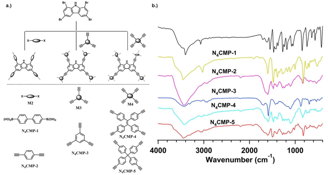 Abstract: Porous aromatic frameworks (PAFs) are a class of rigid, exceptionally stable polymers that exhibit some of the highest surface areas observed for a fully organic material. The exhibit a high-degree of reaction dependent surface area measurements, with the same reaction, the Yamamoto-type Ullmann coupling, being used to synthesize all the highest surface area examples. We investigated the reaction features responsible for differences observed in polymers with the same formal structure synthesized through different reaction routes. Our hypothesis being that differences were due to defects, or departures from the anticipated structure, in the lower surface area examples. These defects would decrease the overall rigidity of the PAF, allowing it to collapse to a denser, less porous phase. Chapter 2 reports the first measurement of native defectivity in PAFs and explores how increasingly defective structures in PAFs lead to lower surface area materials. Notably, we now understand the relationship between coupling efficiency and surface area, imparting us with an important design principle for the creation of new reaction routes towards high surface area PAFs. With the importance of coupling efficiency now known, we then explored opportunities to modify the Yamamoto-type Ullmann coupling reaction to be more economical and accessible, due to its utilization of an expensive and sensitive nickel mediator. Chapter 3 describes the Ni(COD)2-free synthesis of high-surface area PAFs via the in-situ reduction of a more cost-effective Ni(II) source. Anhydrous nickel dibromide is reduced with activated zinc in the presence of COD and bipy to reach Ni(bipy)(COD), the reactive intermediate in the conventional Ni(COD)2-mediated synthesis. The PAF produced through this route was comparable to PAF produced through the conventional synthesis. This route was generalizable to seven different monomers yielding polymers that were comparable in all but one case to those synthesized through Ni(COD)2-mediated approaches. Additionally, the use of less sensitive reagents allowed for gram-plus scale syntheses on the Schlenk line, further increasing accessibility by eliminating the need for an inert atmosphere glovebox. Mesoporous PAFs have been a system of interest for many years. The inability to synthesize them through an isoreticular-expansion style approach has historically been attributed to interpenetration growing polymer network with other polymer strands, newly enabled by the larger pores. Chapter 4 presents an alternative hypothesis, that longer-strut POPs are more defective. The effects of defects in these systems were larger unknown until recently, it is conceivable that there may be more defects present in longer strut systems. Defectivity in long-strut materials is initially investigated using an extended PPN-4 system, PPN-4-XL. The lack of solubility of digested fragments led to the exploration of alternative alkyl substituted systems. Additionally, three other extended strut systems were synthesized and their properties are compared to the shorter-strut conventional examples. The inability to differentiate between interpenetrated and collapsed defective structures illustrates the need for the development of new imaging techniques that can resolve spatial differences in amorphous systems.