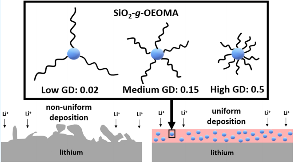 Keywords: lithium metal batteries ; hairy nanoparticles ; artificial solid electrolyte interfaces ; separator coatings ; atom transfer radical polymerization ; dendrite suppression
