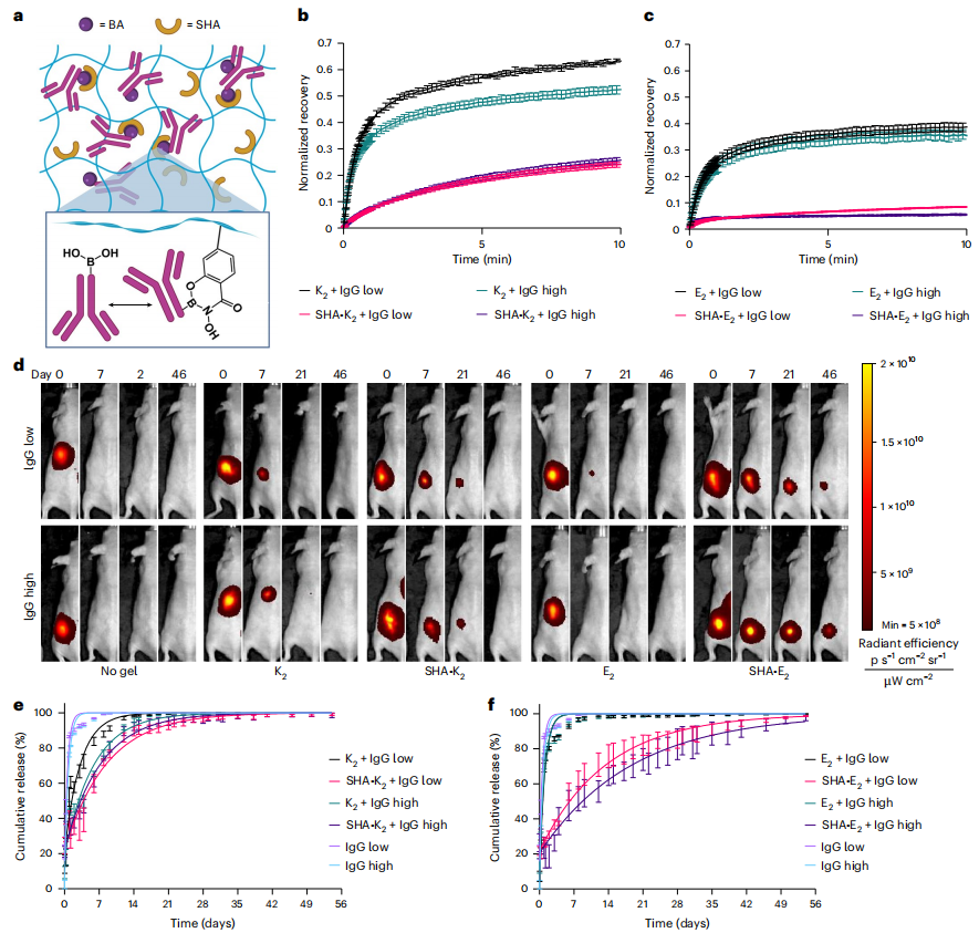 Abstract: Maintaining safe and potent drug levels in vivo is challenging. Multidomain peptides assemble into supramolecular hydrogels with a well-defined, highly porous nanostructure that makes them attractive for drug delivery. However, their ability to extend release is typically limited by rapid drug diffusion. Here, to overcome this challenge, we present self-assembling boronate ester release (SABER) multidomain peptides capable of engaging in dynamic covalent bonding with payloads containing boronic acids. As examples, we demonstrate that SABER hydrogels can prolong the release of boronic acid-containing small-molecule drugs and boronic acid-modified biologics such as insulin and antibodies. Pharmacokinetic studies reveal that SABER hydrogels extend the therapeutic effect of ganfeborole from days to weeks, preventing Mycobacterium tuberculosis growth compared with oral administration in an infection model. Similarly, SABER hydrogels extended insulin activity, maintaining normoglycemia for 6 days in diabetic mice after a single injection. These results suggest that SABER hydrogels present broad potential for clinical translation.