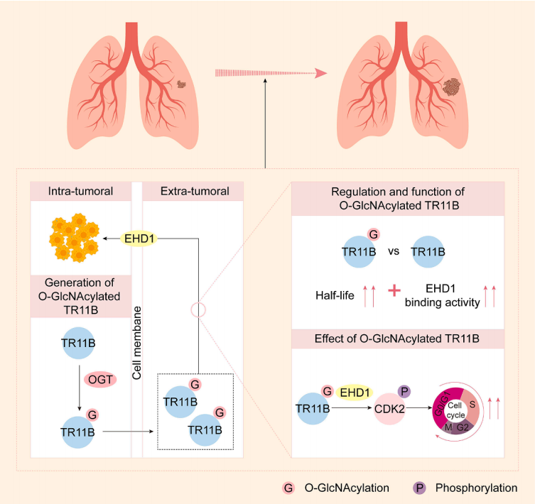 A pathological role of O-GlcNAcylation-driven TR11B production and function in lung adenocarcinoma