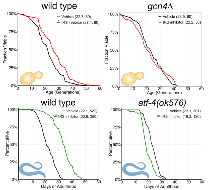 Effect of tRNA synthetase inhibitors on aging in Caenorhabditis elegans