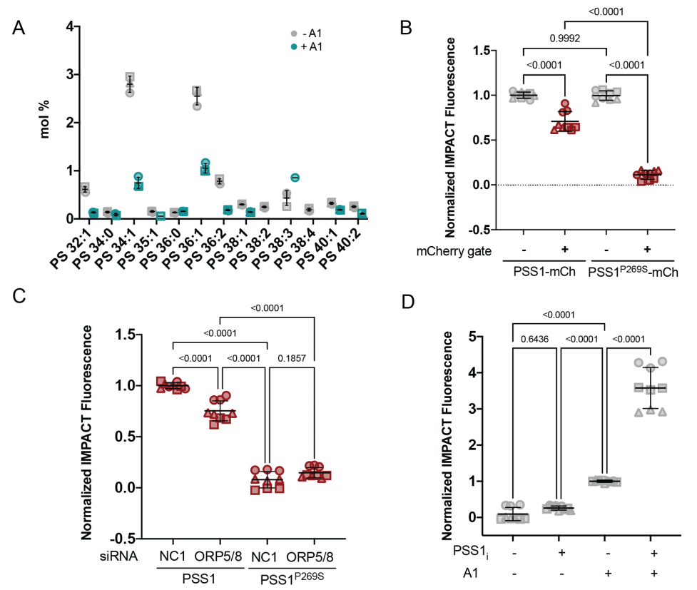 Abstract: Cells tightly control the homeostatic levels and subcellular localizations of membrane phospholipids through the regulation of the activities of numerous lipid-metabolizing enzymes and lipid transfer proteins. Yet, the mechanisms by which lipid imbalances are sensed and corrected to establish and maintain homeostasis are, in most cases, unknown. Here we present an expanded view of plasma membrane (PM) phosphoinositide metabolism by revealing an unexpected metabolic connection between two key anionic lipids in this membrane, phosphatidylinositol 4-phosphate (PI4P) and phosphatidic acid (PA). PM pools of PI4P are generated by PI 4-kinase Type IIIα (PI4KIIIα/PI4KA), an essential enzyme whose partial dysfunction leads to numerous hereditary human diseases. We find that depletion of PI4P by pharmacological inhibition of PI4KA increases the activity of phospholipase Ds (PLDs) and the levels of their lipid product, PA, in the PM. Guided by RNA-seq analysis and proximity labeling proteomics, we elucidate how cells connect this PI4P decrease to a compensatory increase in PA levels. Loss of PM PI4P induces a concomitant decrease of phosphatidylserine (PS) levels, and this metabolic rewiring activates a reciprocal relationship between PS synthesis and PLD-mediated PA generation. These metabolic changes also lead to transcriptional and translational upregulation of the small GTPase RhoB, which enhances PLD-mediated PA synthesis and subsequent actin cytoskeletal remodeling. Our study reveals how disease-relevant perturbation of phosphoinositide synthesis induces an integrated response that ultimately boosts levels of PA, a key anionic lipid and metabolic intermediate in phosphoinositide resynthesis.