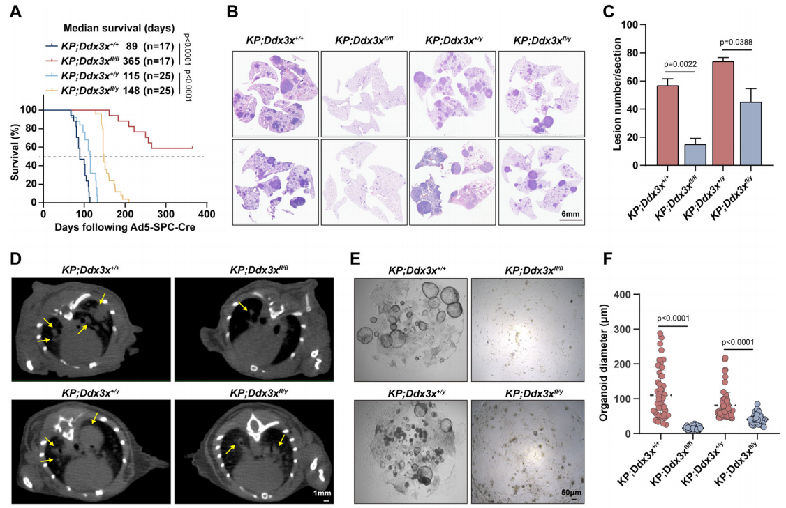 Abstract: Approximately 30% of human cancers carry various RAS mutations, including KRAS, NRAS, and HRAS. Among these mutations, KRAS is the most prevalent isoform detected in lung cancer. While several small molecular inhibitors targeting specifically KRASG12C have been developed and tested clinically, alternative approaches are still necessary due to expected drug resistance. In this study, we present evidence that the loss of DDX3X significantly delays tumor progression in various KRAS-driven lung cancer models. Inhibition of DDX3X disrupts cysteine and glutathione metabolism, thereby inducing ferroptosis in lung cancer cells. This effect is primarily mediated by the downregulation of Cystathionine-β-synthase (CBS), the rate-limiting enzyme in cysteine generation. Mechanistically, DDX3X directly binds to the transcription factor JUND, which mediates the transcriptional regulation of METTL16, a key N6-methyladenosine methyltransferase, and subsequently regulates m6A modification and translation of CBS transcripts. This cascade induces hypermethylation and high expression of CBS, consequently triggering cysteine production and maintaining antioxidative homeostasis, which is essential for the survival of KRAS-driven lung cancer cells. Finally, we demonstrate that a newly developed DDX3X PROTAC degrader J10 efficiently delays lung cancer progression with multiple advantages compared to DDX3X small molecular inhibitor RK-33 and limited side effects. These findings unveil the potential of DDX3X as a valuable target for adjuvant therapies in managing KRAS-driven lung cancer.